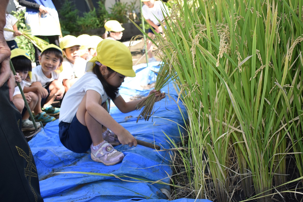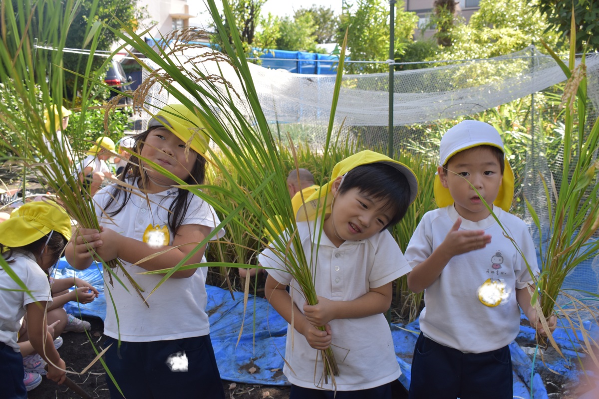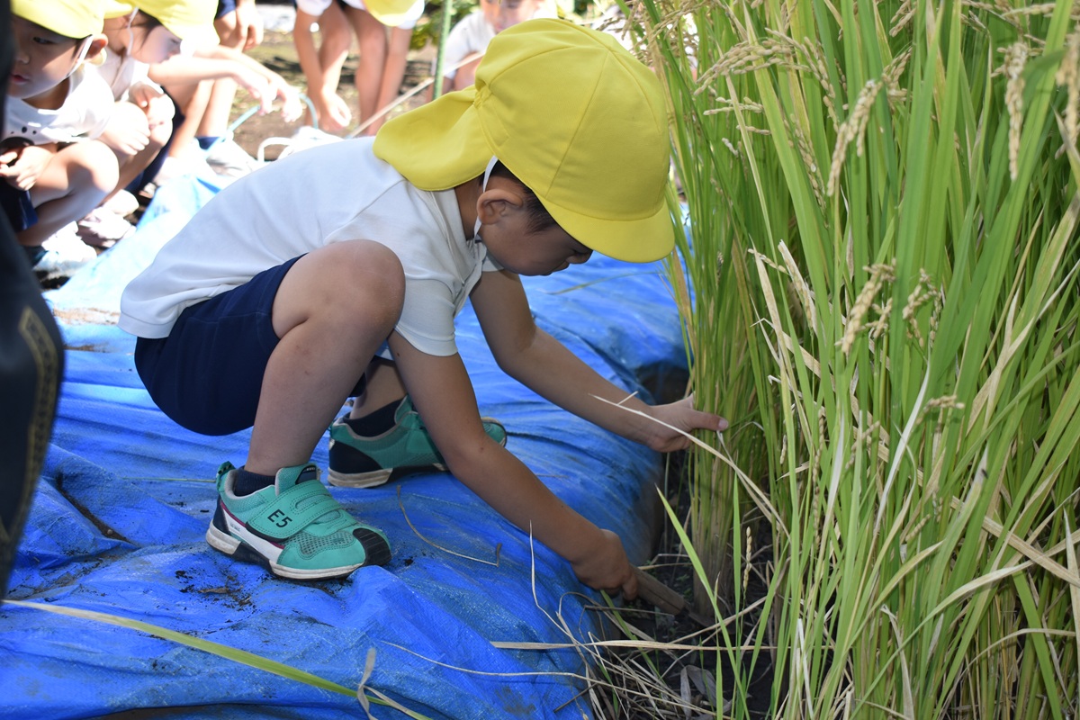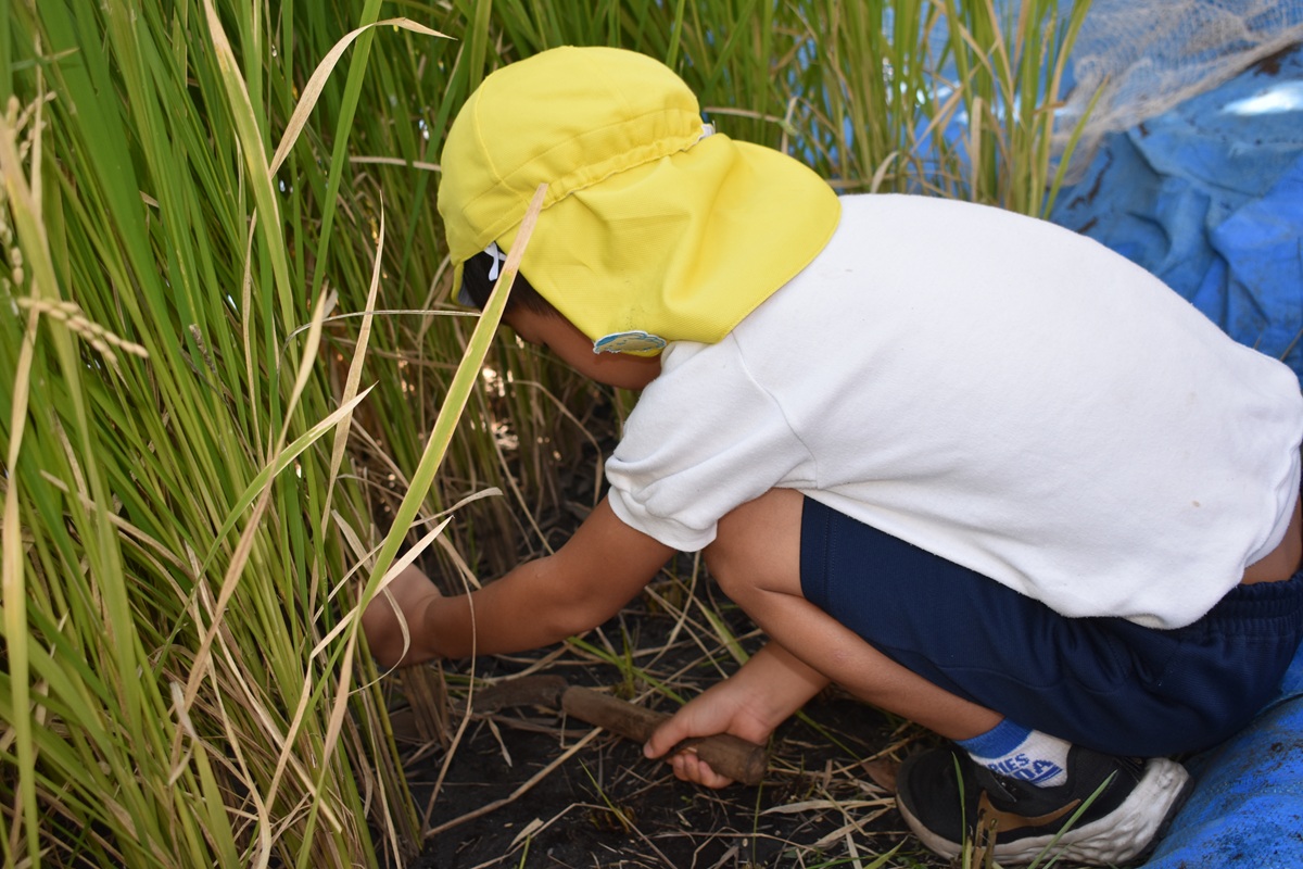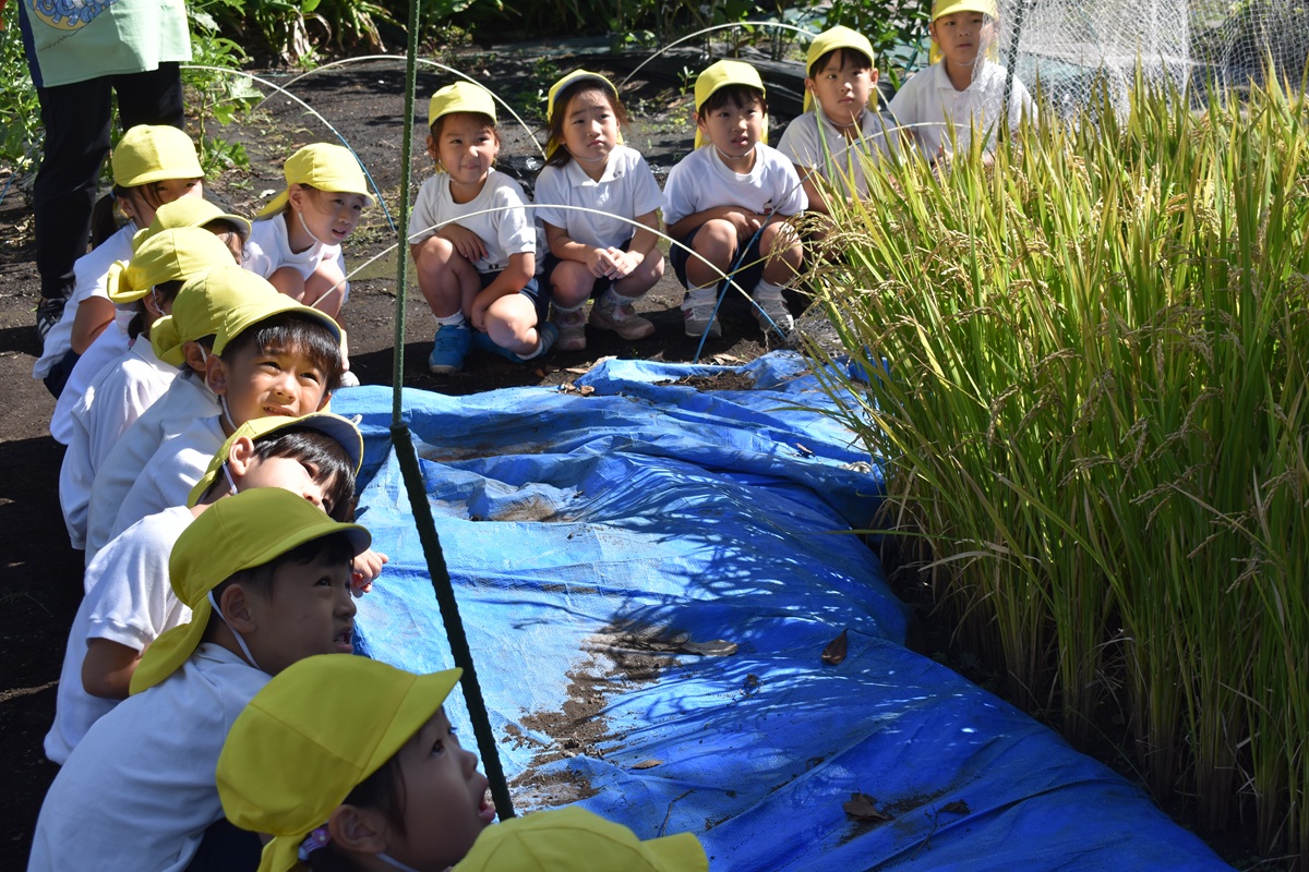 年長組が代かきから始めた田んぼにお米が実りました!!