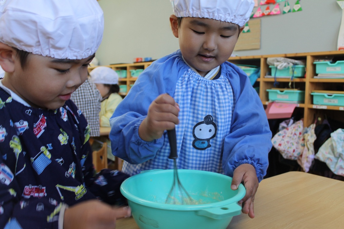 年中組は、さつまいも蒸しケーキを作りました♪