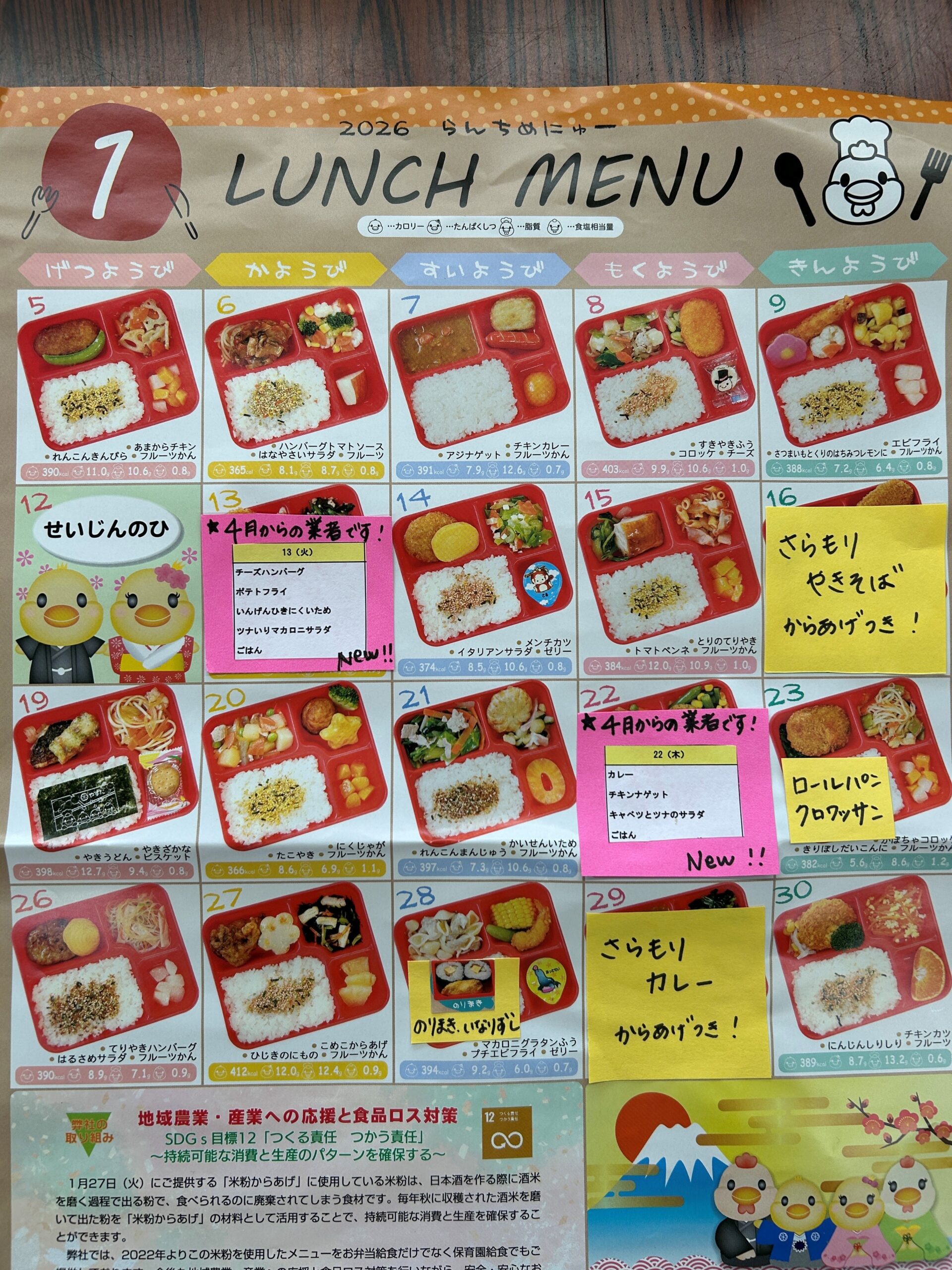 青空でお知らせしました来年4月からの新しい業者の給食を今月2回メニューに入れました♪