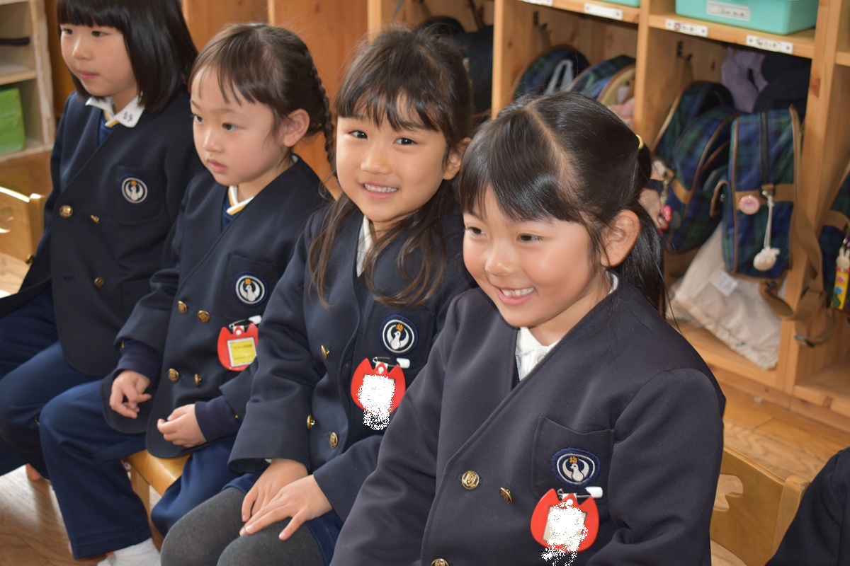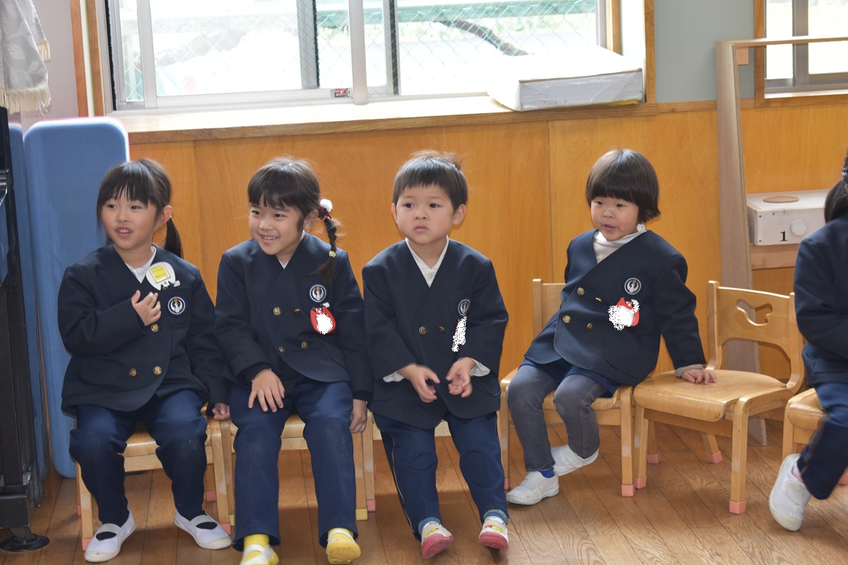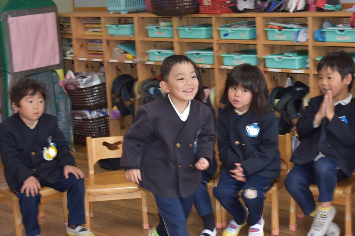 その後、お部屋で新しいクラスのバッジをもらい、みんなとっても嬉しそうでした♪