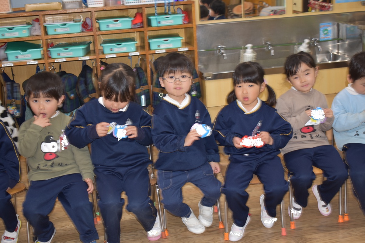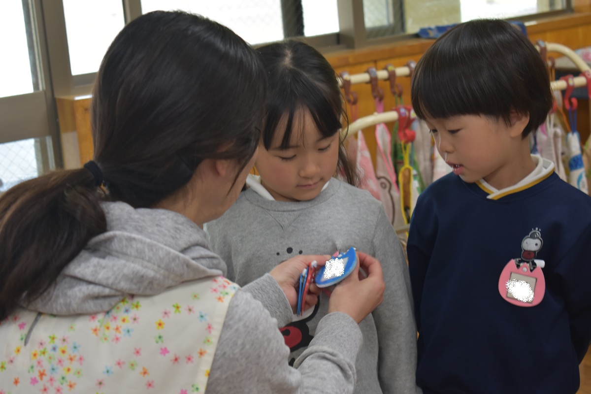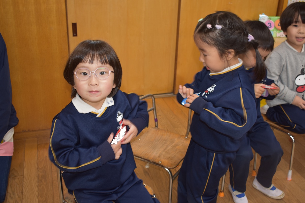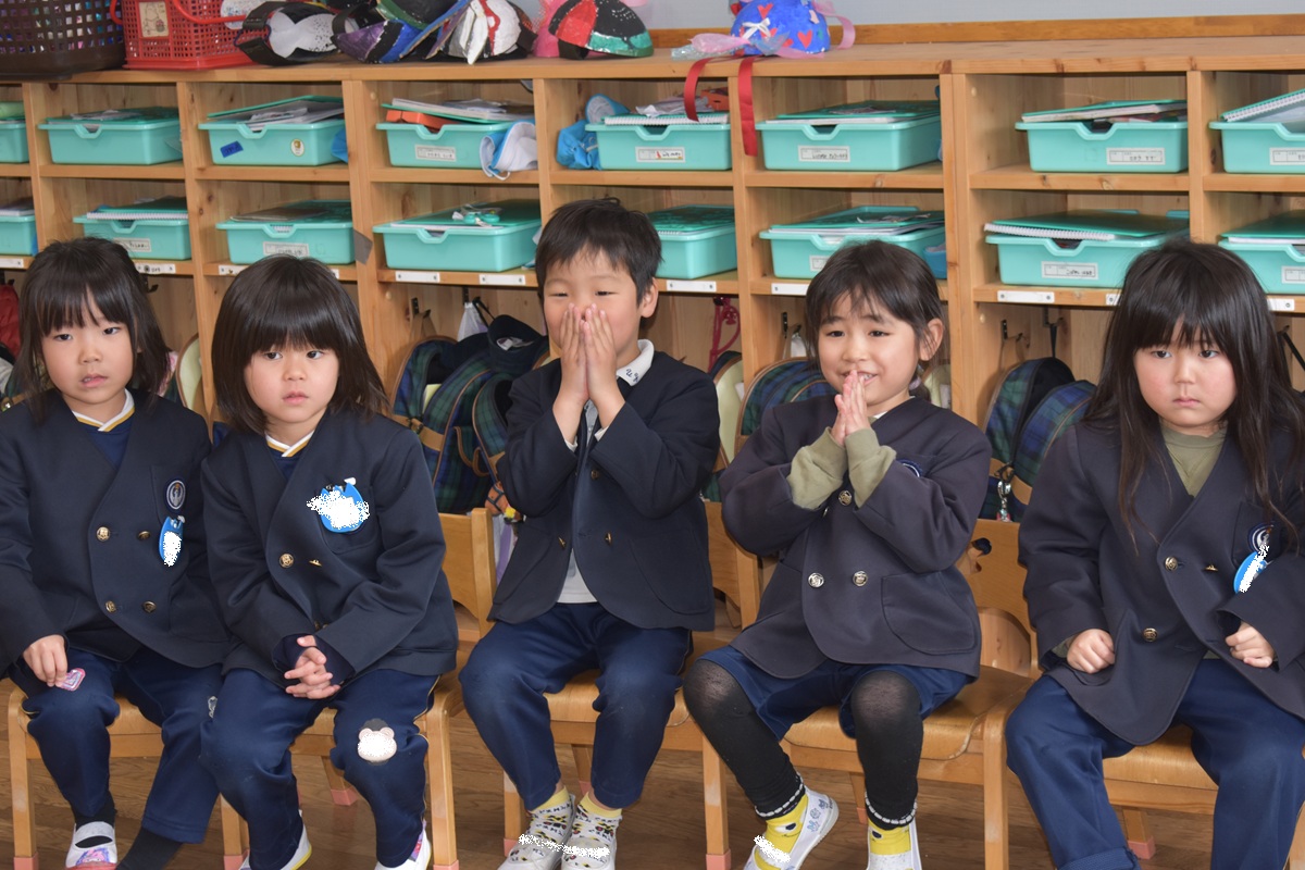 その後、お部屋で新しいクラスのバッジをもらい、みんなとっても嬉しそうでした♪